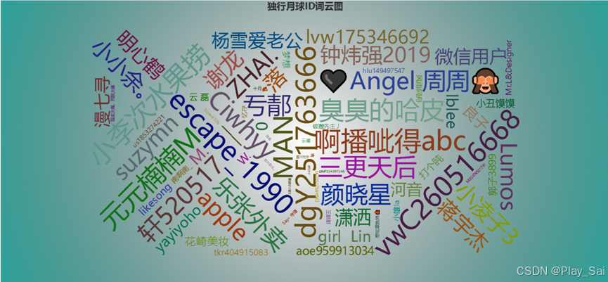 1.随机取200个用户名,使用PyEcharts库绘制词云图;